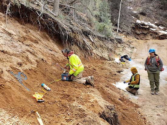 The ESFZ is bound by the shallower dipping Eagle Zone to the northeast and the steeply dipping Royal Shear Fault to the southwest. The area of deformation is open along strike and to depth below the southwest dipping Royal Shear Fault. As reported previously and in this release, significant gold intersections in drilling beneath these areas of channel sampling have been reported over 530 m of trend for the Eagle Zone and over 400 m trend at ESFZ an area of brittle-ductile deformation, strong pervasive ankerite-sericite alteration, and multiple brecciated quartz veins. A photo of the 2022 channel sampling within this structurally deformed and altered ESFZ is in Figure 2 below.