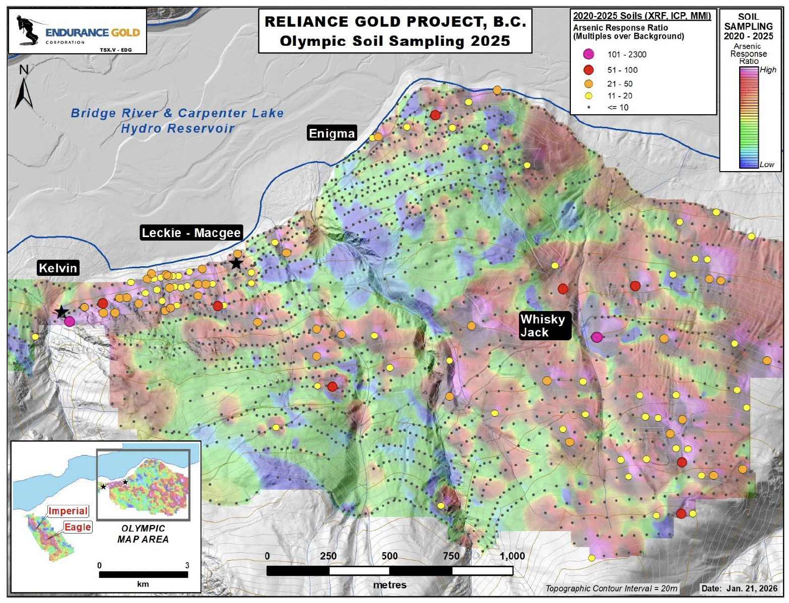 Endurance Gold Corporation ((TSXV:EDG; OTCQB:ENDGF; FRA:3EG) (the “Company”) is pleased to announce results from prospecting and soil sampling surveys conducted on its 100%-owned Reliance Gold Project (the “Reliance Project” or “Project”) during the 2025 season. The road accessible Project is located 4 kilometres (“km”) east of the village of Gold Bridge within the historic Bridge River Mining Camp.