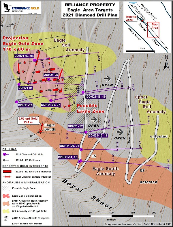 Figure 2 – Reliance Property, Eagle Area Targets – 2021 Diamond Drill Plan
