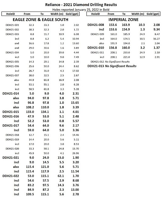 - Significant gold intersections of greater than ten (10) gram-metres have now been intersected in three (3) of the six (6) diamond drill holes completed at the Imperial Zone in 2021.